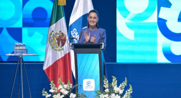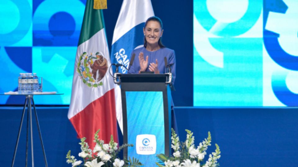 Sheinbaum participó en la 82 Asamblea Anual de la Cámara de la Industria de la Transformación (Caintra), Nuevo León, celebrada en la capital del estado al norte de México.