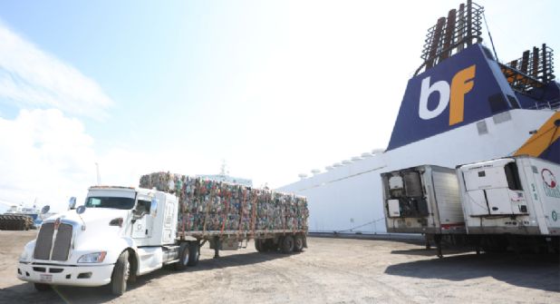 De ahí, las botellas de PET emprenden su viaje vía terrestre hasta Toluca para ser convertidas nuevamente en botellas. Heriberto Torres, jefe de responsabilidad empresarial en Baja Ferries, detalló que mensualmente trasportan 15 toneladas de las pacas de botellas de PET ya compactadas.
