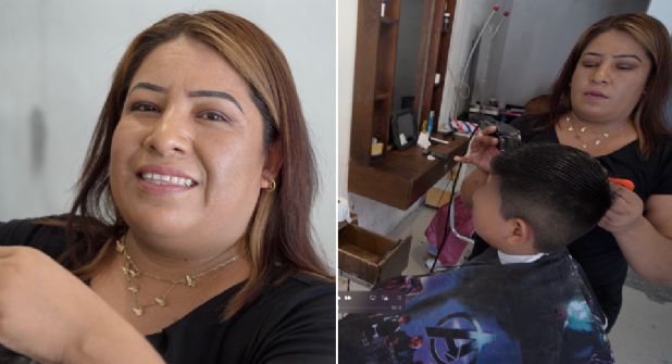 “De corte, estilista, es una carrera completa que me dieron de maquillaje, peinados, corte, mechas, todo, uñas y pestañas. Así inicié en la casa, primero aplicando uñas, pestañas, seguía estudiando y luego ya empecé a estudiar Barber, hay un maestro especializado en Barber, tomé un curso de 12 meses y ya después que puse el negocio aquí pues es Barber”, dijo Olga.