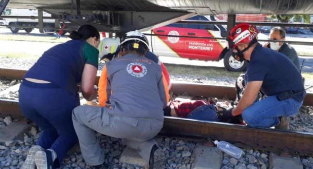 Monterrey.- Un descuido causó que una joven de 24 años perdiera su pierna izquierda al ser atropellada por el tren cuando se dirigía a trabajar, en el municipio de Monterrey.