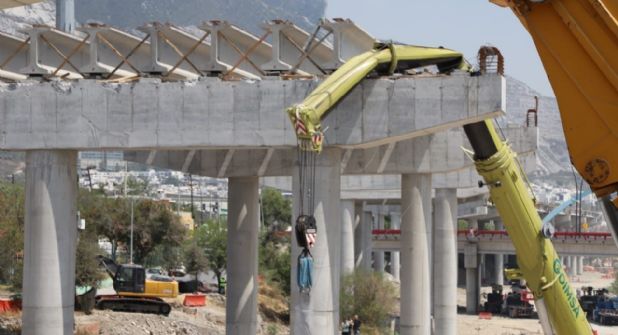 San Pedro Garza García.- Tras una falla en una grúa de carga alrededor de cinco vigas que formaban parte Viaducto Santa Catarina colapsaron dejando como saldo un trabajador con heridas leves.