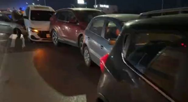 Monterrey.- Un choque múltiple, en el que se vieron envueltos 10 vehículos, provocó caos y tráfico lento en el Boulevard Miguel de la Madrid, en el municipio de Guadalupe.