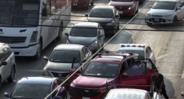 Al verse acorralados por el tráfico, los delincuentes bajaron del auto y dispararon contra la unidad de la policía.