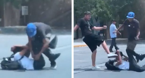 Al mismo tiempo, uno de los agresores introdujo su mano en uno de los bolsillos del pantalón del chico, a quien despojaron de lo que parece ser su teléfono celular.