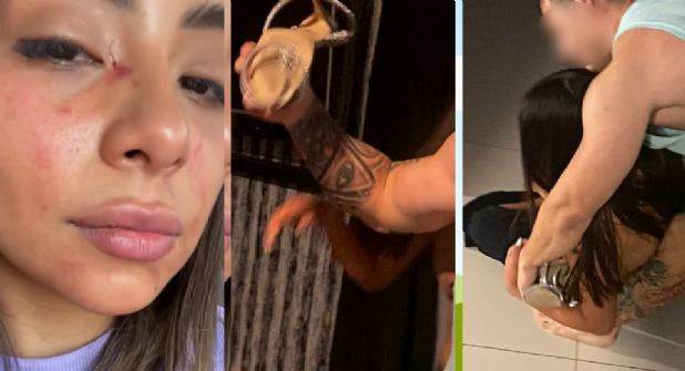 "Adjunto con primeras evidencias donde claramente se ven los delitos cometidos donde mi ex pareja me toma de los brazos, cuello, manos, cabeza, pies, cadera y termina golpeando con un objeto en este caso mi propio tacón color plateado", se lee en el texto.
