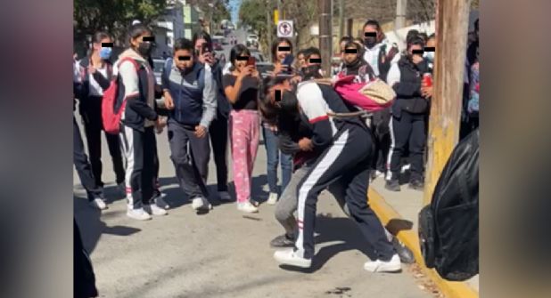 Santiago. – Dos estudiantes de secundaria protagonizaron una pelea a golpes en las inmediaciones de una institución académica en Santiago, Nuevo León, y su enfrentamiento fue presenciado por un gran número de jóvenes que no hicieron mucho para controlar la situación.