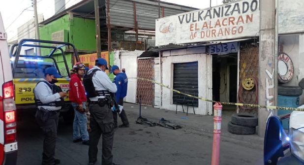Al lugar llegaron elementos de Protección Civil, quienes acordonaron el perímetro de este negocio denominado “Vulkanizadora el alacrán de Durango”.