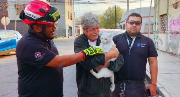 De acuerdo con las autoridades de seguridad, el pequeño felino no presentaba ninguna lesión, por lo que pudo ser entregado a su dueño de inmediato, quien se observa contento en las imágenes compartidas, tras recuperar a su mascota.
