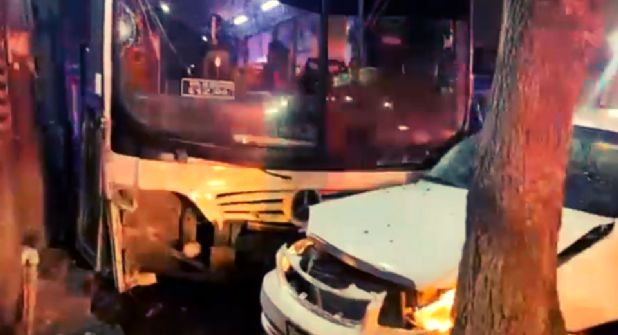 El accidente se dio de manera lateral. Tras el impacto, tanto el camión urbano como el automóvil quedaron arriba de la banqueta. Ambas unidades quedaron con un importante daño en su parte frontal.
