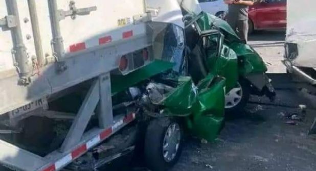 Al parecer, en el incidente estuvieron involucrados dos tráilers y alrededor de cinco automóviles. Se puede observar que uno de los camiones colisionó con el automóvil, dejándolo prensado.