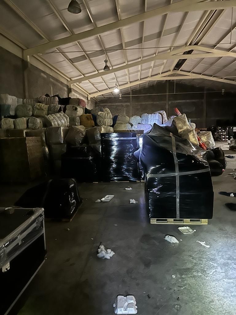 En el lugar se decomisaron más de 850 pacas de ropa, 19 cajas con zapatos, más de 100 cajas con paquetes de cigarros y más de dos mil 77 cajas de whisky de diversas marcas, esto derivado de las investigaciones realizadas por elementos de la Policía Federal Ministerial (PFM) de la Agencia de Investigación Criminal (AIC).