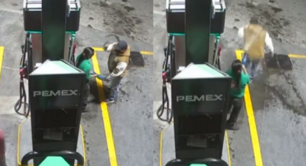 Uno de los hombres, que portaba chamarra blanco con café, amagó con un arma a la despachadora, quien lo primero que hizo fue dirigirse a la bomba y tomar la manguera para luego empapar al individuo, quien salió huyendo del sitio, sin dinero y con el gran peligro que significaba estar bañado en combustible.