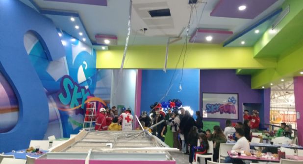 La estructura del techo compuesto por una balastra (equipo de iluminación) cayó encima de una mesa donde había menores comiendo. Reportes señalaron que la estructura que se desplomó tenía unas dimensiones de dos por siete metros.
