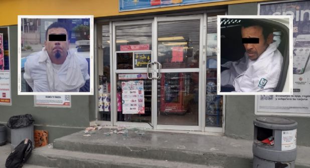 Los oficiales realizaban labores de prevención en el Operativo Navidad Segura 2023, cuando por medio de la central de radio les informan de que en una tienda Oxxo, se activó el botón de alerta, por lo que al llegar encontraron el vidrio de la puerta dañado y que los dos hombres vestidos de blanco estaban en el interior.