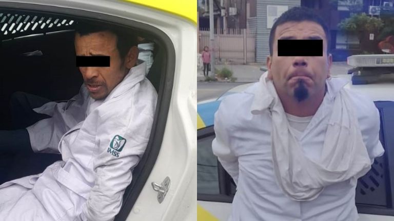 Monterrey. – Una cámara de seguridad captó el momento de la detención hecha a dos asaltantes que se hacían pasar por personal médico en la ciudad de Monterrey.