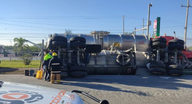 Cadereyta Jiménez. – Un autotanque que transportaba 60 mil litros de diésel volcó esta mañana de miércoles 27 de diciembre en el municipio de Cadereyta Jiménez.