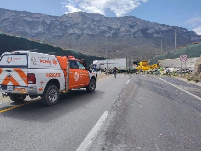 Monterrey. – Un tráiler se quedó sin frenos e impactó a otro sobre el Anillo Periférico en la Carretera a Saltillo, y eso trajo consigo obstrucción vial en la zona.