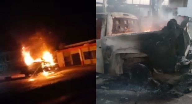 Al atender el reporte de una camioneta en llamas, elementos de la Agencia Estatal de Investigaciones, así como los elementos municipales, reportaron cuatro cuerpos calcinados.