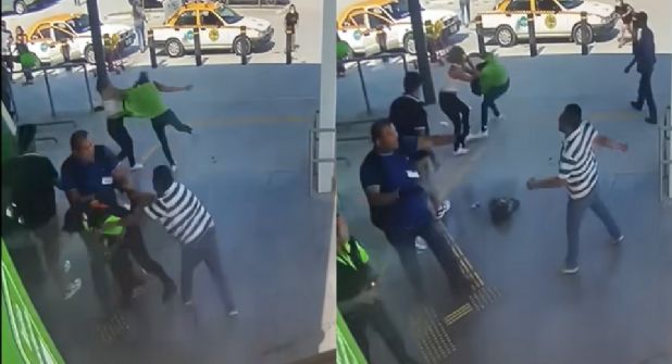 En el video se aprecia a al menos cuatro personas (dos hombres y dos mujeres) enfrascadas en la riña ante un grupo de trabajadores, quienes habrían truncado el robo de mercancía, sin embargo,no pudieron hacer mucho para evitar la huida de los ladrones, quienes se marcharon del lugar a bordo de un auto Tsuru de color guindo.
