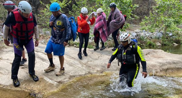 Monterrey.- Un grupo de 20 personas fueron rescatadas por elementos de Protección Civil del municipio de Santiago y de Nuevo León, durante la mañana de este domingo, en la zona de Matacanes, ubicada en Camino a Potrero Redondo, en la colonia Las Adjuntas, en el municipio de Santiago.