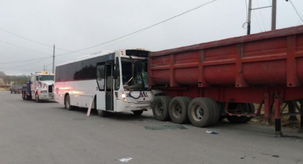 Fue concretamente un camión de personal el que se impactó contra otro vehículo pesado, de carga, que se encontraba estacionado en las calles Orquídea y Amapola, en la Colonia Bugambilias.