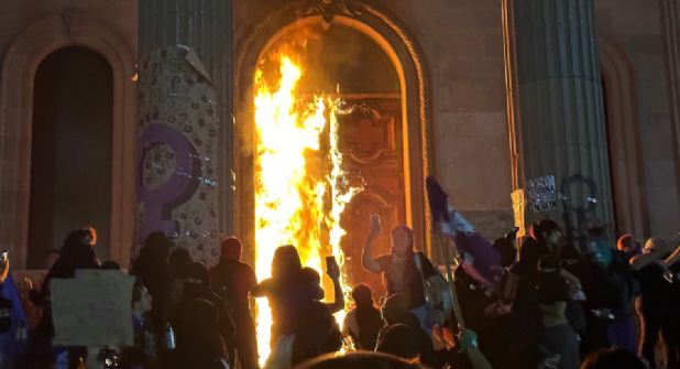 Células organizadas de grupos protestantes, realizaron acciones coordinadas para irrumpir la marcha del 8M en Monterrey, ocasionando disturbios en diferentes puntos del centro, como la quema de las puertas del Palacio de Gobierno, quebrando vidrios de comercios y realizando pintas en paredes de diversos inmuebles.