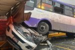 Monterrey.- Un aparatoso accidente de un camión urbano de la Ruta 1 sobre la avenida Alfonso Reyes y Calzada Guadalupe Victoria en la colonia Sarabia, en el municipio de Monterrey provocó la movilización de los cuerpos de auxilio de distintas corporaciones.