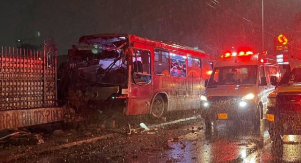 Los hechos fueron reportados a las 22:00 horas este lunes 10 de abril, donde el camión con número de serie uno se impactó contra un muro, dejando un saldo de 10 personas heridas.