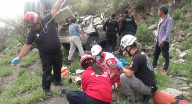 Monterrey.- Un automóvil cayó la tarde de este domingo 16 de abril a un barranco de 25 metros de altura, dejando al menos dos personas lesionadas en el municipio de Monterrey.