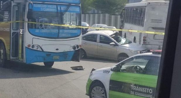 Monterrey.- Un accidente vehicular se presentó la tarde de este martes 18 de abril, donde un automóvil terminó por impactarse contra una unidad de transporte privado en el municipio de Guadalupe, Nuevo León.