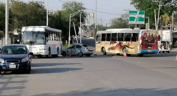 De acuerdo a los testigos, trasciende que el choque habría ocurrido luego de que el conductor del vehículo tipo Aveo en color gris no se percató de la presencia del camión urbano el cual, posteriormente, lo impactó y lo aventó contra otro camión de personal de una empresa.