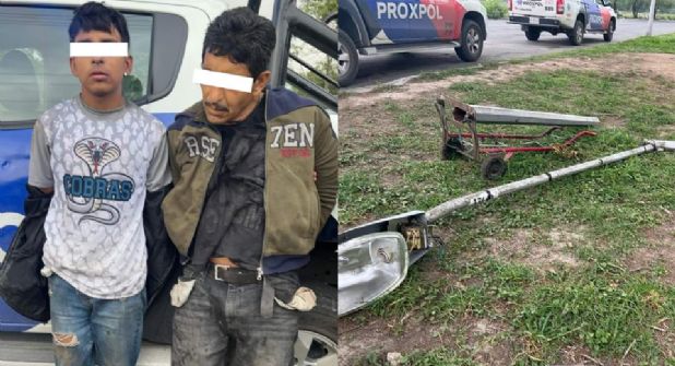Escobedo. – Un padre y su hijo pasaron tiempo juntos intentando robar postes metálicos de alumbrado público en el municipio de Escobedo.
