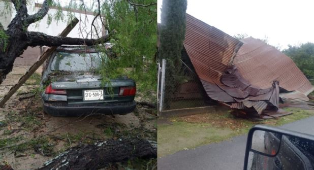 De acuerdo con el alcalde de ese municipio, Plácido González, informó que debido a una fuerte tromba de agua que llegó al municipio, muchos techos de viviendas y bodegas cayeron, postes de luz derrumbaron, así como árboles; donde vehículos y calles resultaron afectadas.
