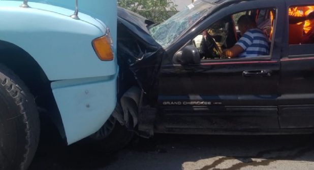 Apodaca.- Un accidente entre una camioneta tipo Grand Cherokee y un tráiler se registró la tarde de este miércoles 31 de mayo en el puente Prolongación Ruiz Cortines, en la zona de Dulces Nombres.
