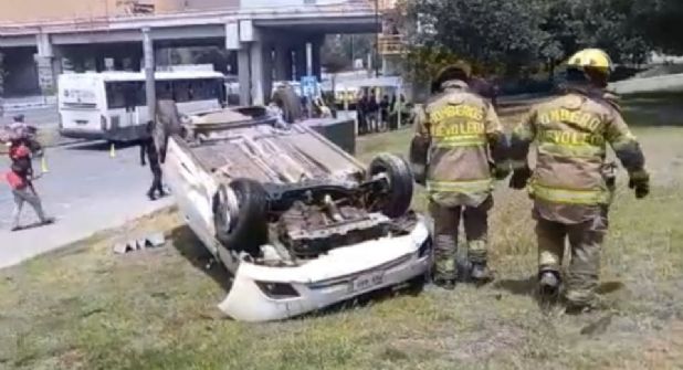 A través de un video compartido por la corporación de auxilio, se observa al vehículo Aveo en color blanco sobre el jardín del mencionado centro comercial, mismo que tendría placas foráneas del Estado de Morelos.