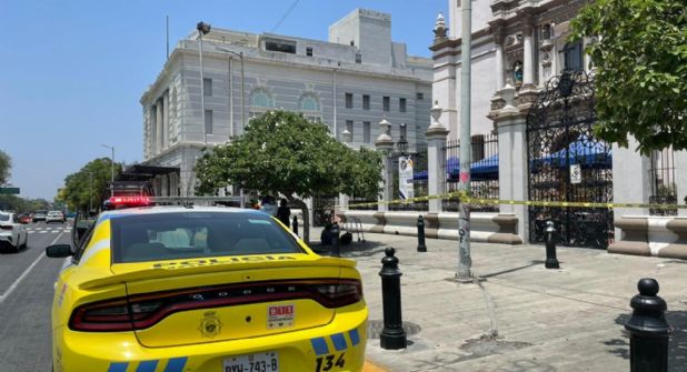 Monterrey.- Un hombre murió en la entrada de la Catedral de Monterrey, cuando aparentemente realizaba una protesta encadenado con una pancarta a favor de los migrantes.