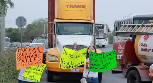 Apodaca. - Vecinos de las colonias aledañas a prolongación Ruiz Cortines y carretera a Dulces Nombres, abrieron semana con una protesta pacífica, sobre el puente de dicha vía que cruza con la autopista al Aeropuerto, en los límites de Apodaca y Guadalupe.