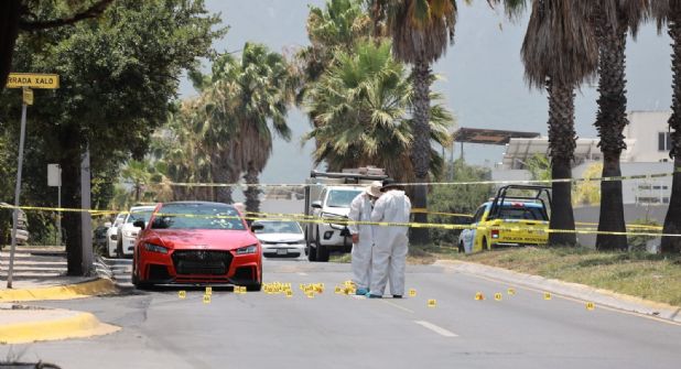 Monterrey. – Dos hombres que viajaban a bordo de un automóvil deportivo fueron ejecutados esta mañana de miércoles en la colonia Cerradas de Cumbres, en el municipio de Monterrey.
