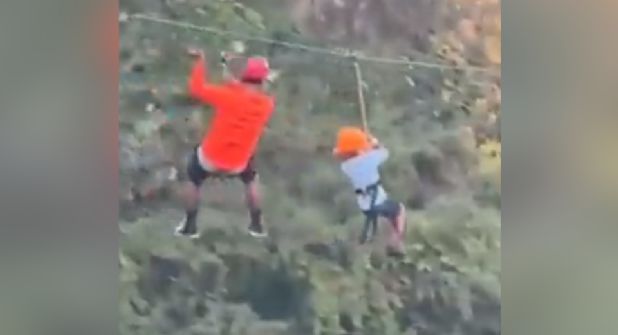 Parecía que todo estaba bajo control y que ambos llegarían al final de la tirolesa en unos segundos, sin embargo, sorpresivamente el niño cayó y enseguida se dejaron escuchar los gritos de las personas que vieron el momento.