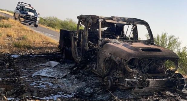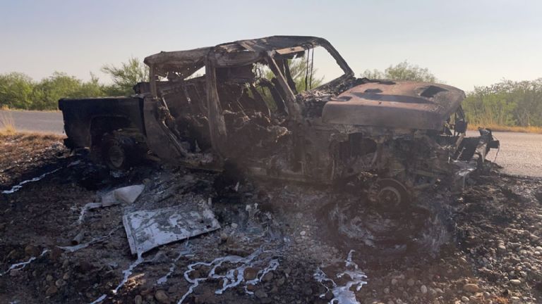 Trascendió que a un par de kilómetros de la carretera a Reynosa circulaban personas que observaron el Jeep incendiado, quienes luego dieron aviso a las autoridades.