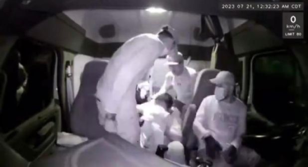 Posteriormente, se aprecia como los otros dos delincuentes, llevan al chofer a la parte de atrás y corren una cortina para tapar la vista, acto seguido el video se corta.