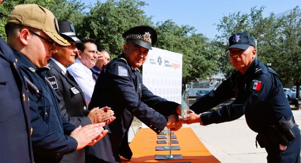 Monterrey.- Diez miembros de la policía de Santa Catarina fueron condecorados al concluir su labor, después de servir durante más de 30 años en la Secretaría de Seguridad Ciudadana y entregarse por completo a la protección de los habitantes.