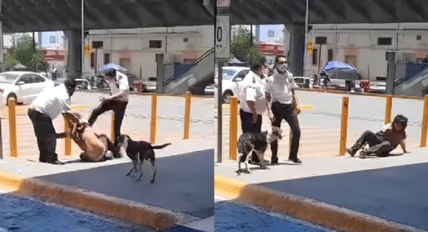 Sin embargo, el usuario que captó las imágenes reclamó que el indigente no se estaba drogando y que ese pañuelo le servía para cubrir una herida en la mano, algo que lo habría mostrado a los guardias, que procedieron a atacarlo.