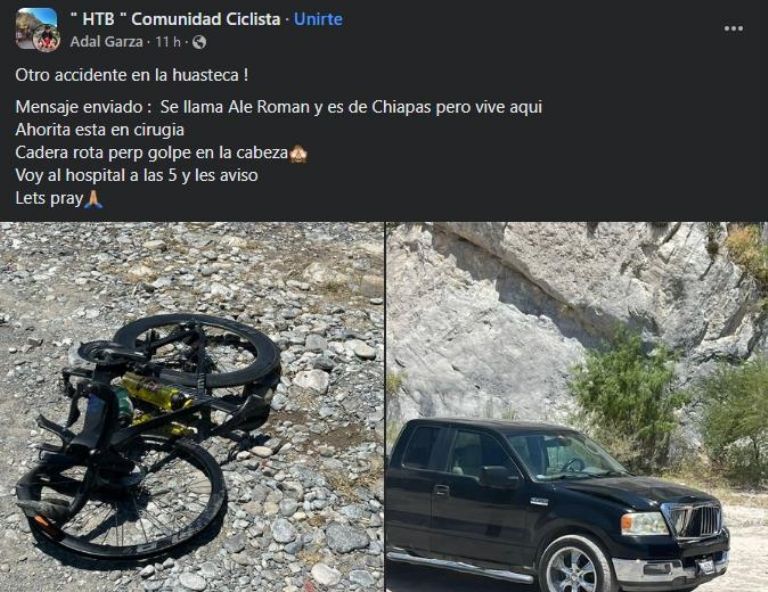 La ciclista, identificada como Alejandra Román, paseaba a la altura del kilómetro 6 de la carretera a la Cortina Rompepicos, cuando fue impactada por el vehículo pick up Lobo color negro.