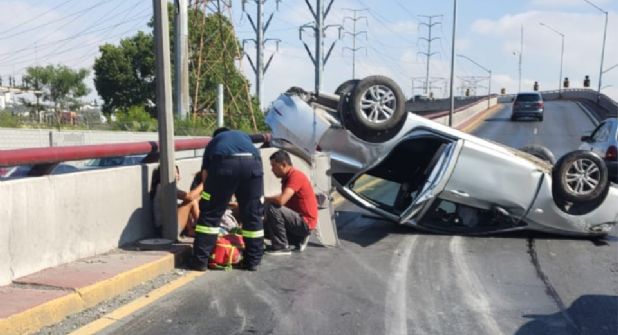 Monterrey. – Un automóvil sufrió una volcadura esta mañana de martes 15 de agosto en la avenida Eugenio Garza Sada, al sur del municipio de Monterrey.
