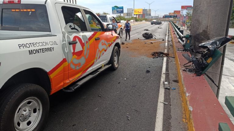 Monterrey.- La mañana de este sábado 16 de septiembre se registró un accidente vial en donde un automóvil se estrelló contra el muro divisorio, dejando a la conductora lesionada.