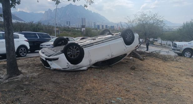 Monterrey.- Alrededor de las 15:00 horas, se registró una volcadura sobre la avenida Alfonso Reyes en su cruce con la avenida José Calderón en el municipio de Santa Catarina