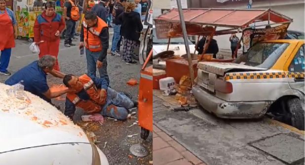 El accidente sucedió esta tarde en el cruce de las calles Ignacio Aldama y Porfirio Díaz, donde una mujer resultó con golpes en la cara y el comerciante de tostadas, conocido por los vecinos y frecuentes a la plaza principal del municipio, como "Don Tosto", terminó en el suelo y con su negocio destrozado.