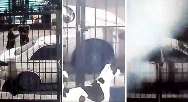 El can estaba ladrando ante la presencia de los chicos, pero dos de ellos en específico se alejaron del grupo y comenzaron a manipular un encendedor y un denominado cohete que, al encender su mecha, fue arrojado al otro lado del portón en donde estaba el animal, que vio la explosión cerca.