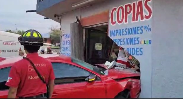 Monterrey.- Una mujer resultó herida luego de que un automovilista perdiera el control de su auto y se impactara contra la pared de una papelería dejándola completamente destruida.